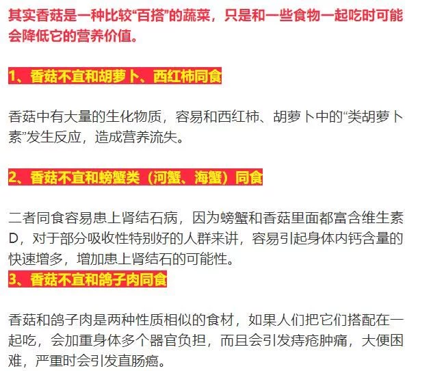 经常食用效果更显著,但如果不恰当地将香菇和一些相克食物同吃,就会起到反效果。