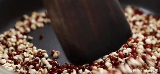 3. 小火不停翻炒,时间大概5分钟,把红豆和薏米炒香。