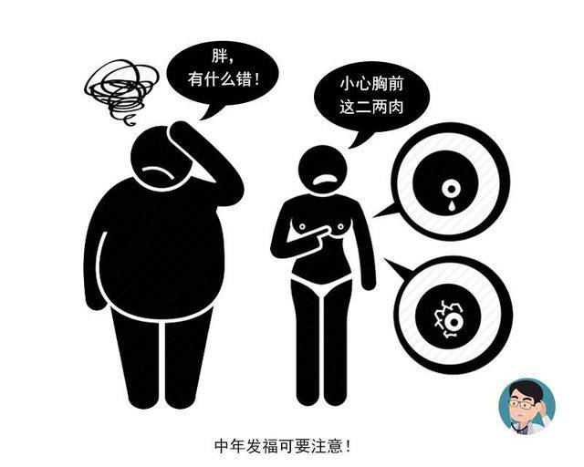 而脂肪中的芳香族消化酶会刺激肾上腺分泌更多的雌激素,从而导致内分泌紊乱,增加晚期癌症的发生率。