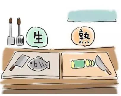 2.分开生的和熟的食物。用于加工冷冻食品的容器(锅)、刀具和砧板应分开放置。应该及时清洗和消毒。避免与直接加工食品的器具混合,避免交叉污染。