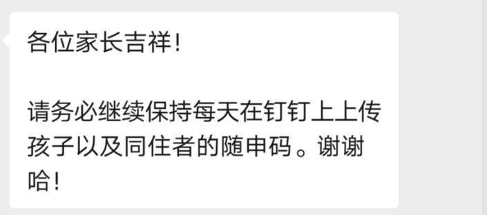 学校提醒学生家长每天提交随申码。受访者供图每天提醒家长提交申请代码。照片由受访者提供